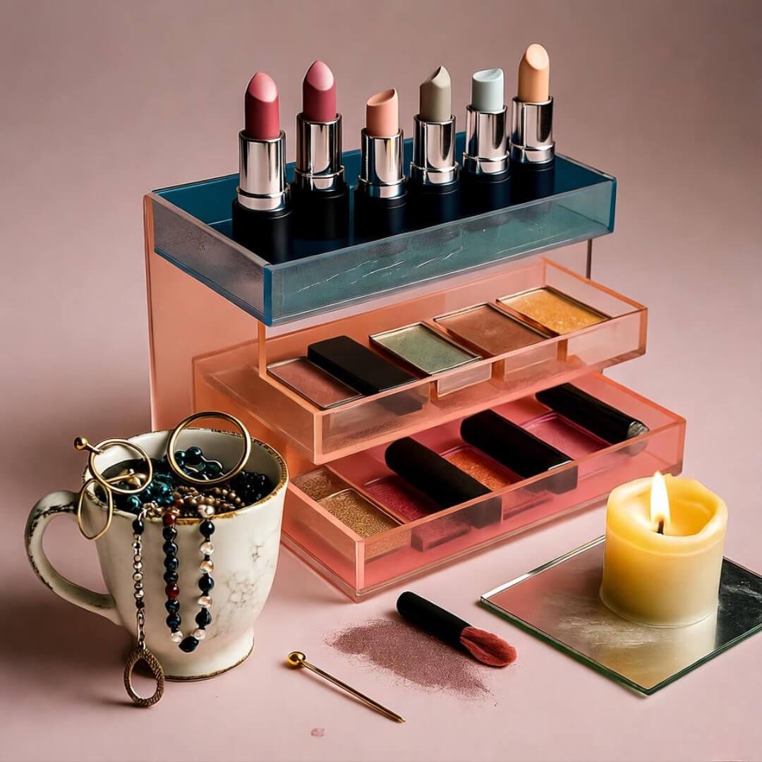 - Clear Acrylic Makeup Thingy: These are everywhere for a reason. You can see all your stuff, and they come in a ton of sizes. I got mine from The Container Store, and it’s like my lipsticks are living in a penthouse. Pro tip: get one with drawers for brushes—saves you from digging like a gremlin.